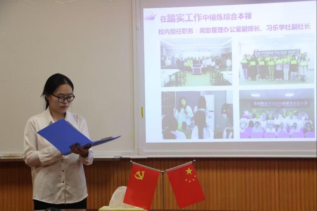 本次会议严格遵守“公平、公正、公开、择优”的原则。现场评审环节,2022级学生代表李瑶、邵艺先、马佳音三位候选人,通过个人陈述、PPT展示等形式,围绕政治素养、专业学习、创新实践、公益服务等方面进行汇报,全面展现他们的综合素养。同时,三人的综合表现生动体现了我们学子昂扬向上、锐意进取的精神风貌。随后,王淑贤书记和姚雨承老师对所有候选人的优异表现给予肯定,并鼓励低年级同学以优秀学子为榜样,勤奋学习,追求卓越。