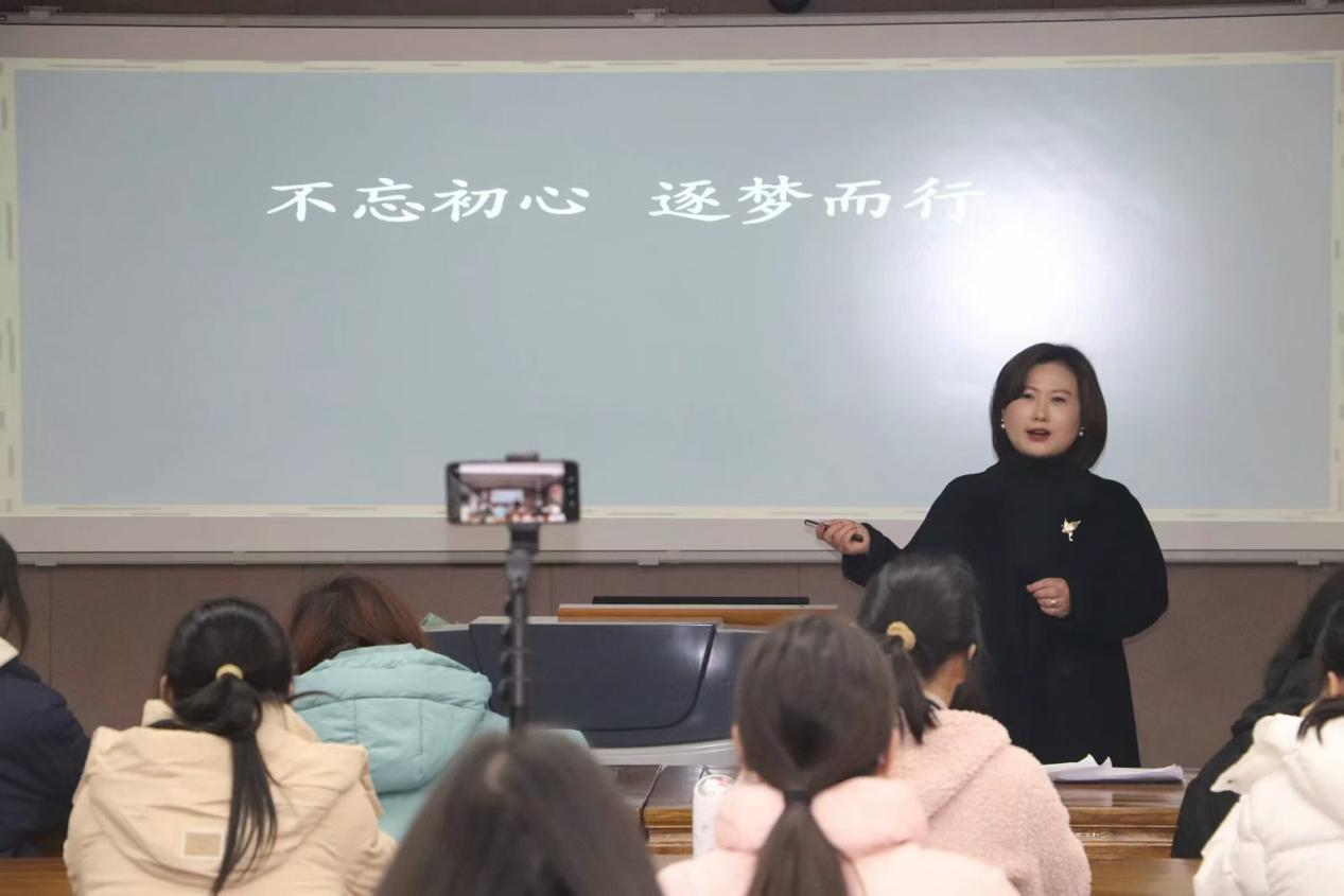 潘攀副校长结合自己多年的教育教学实践和管理经验,从教育初心、专业成长路径、教育教学方法等多个维度,深入浅出地阐述了青年教师如何在教育事业中实现自己的专业成长。她强调,青年教师要始终保持对教育事业的热爱和敬畏之心,不断提升自己的专业素养和教育教学能力。同时,她还鼓励青年教师要勇于创新,积极探索适合学生的教育教学方法,关注学生的个性发展,培养学生的创新精神和实践能力。潘老师通过大量的案例分析和实践经验分享,让师生们更加深入地理解了教育教学的本质和规律。她生动的讲述、丰富的案例和深刻的见解,赢得了在场师生们的阵阵掌声。