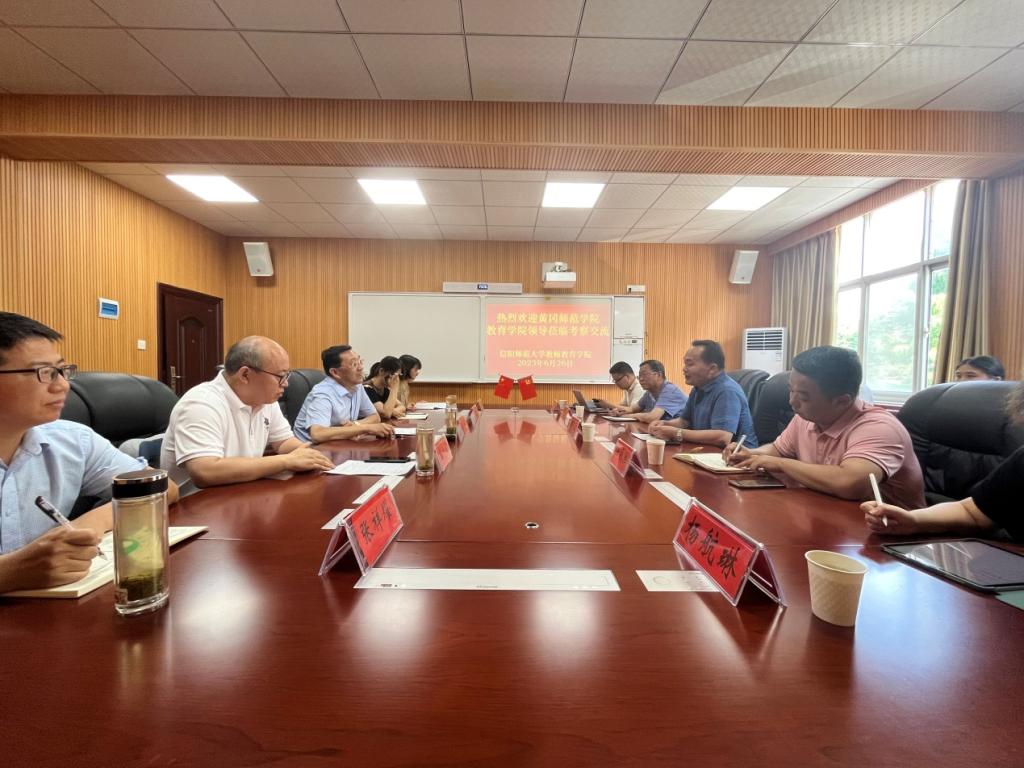 6月26日下午,黄冈师范学院教育学院院长陈中文、副书记王永胜等一行7人来我们就小学教育专业“红色园丁”人才培养项目与大学生社会实践活动开展等进行考察交流。betway唯一官网党委书记潘登、副书记王艳蕊、副院长李文田等在教七楼301会议室接待来访客人,实践教学中心、师范技能训练教研室相关教师代表参加座谈会。