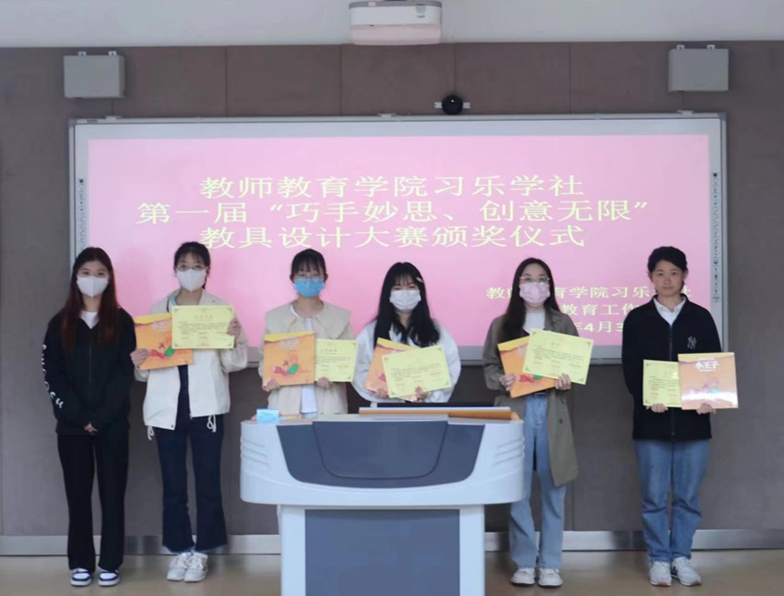 4月30日,由教师betway唯一官网行知教育工作室、习乐学社主办,教育科学协会、建筑爱好者协会、声音文学社、大学生书法爱好者协会承办的第一届“巧手妙思、创意无限”教具设计大赛颁奖仪式在教七楼201教室顺利举行。此次比赛采取线上征集作品的形式,全校近200人参与,我们教师张祥耀、谭阿明、王召召担任此次大赛评委。